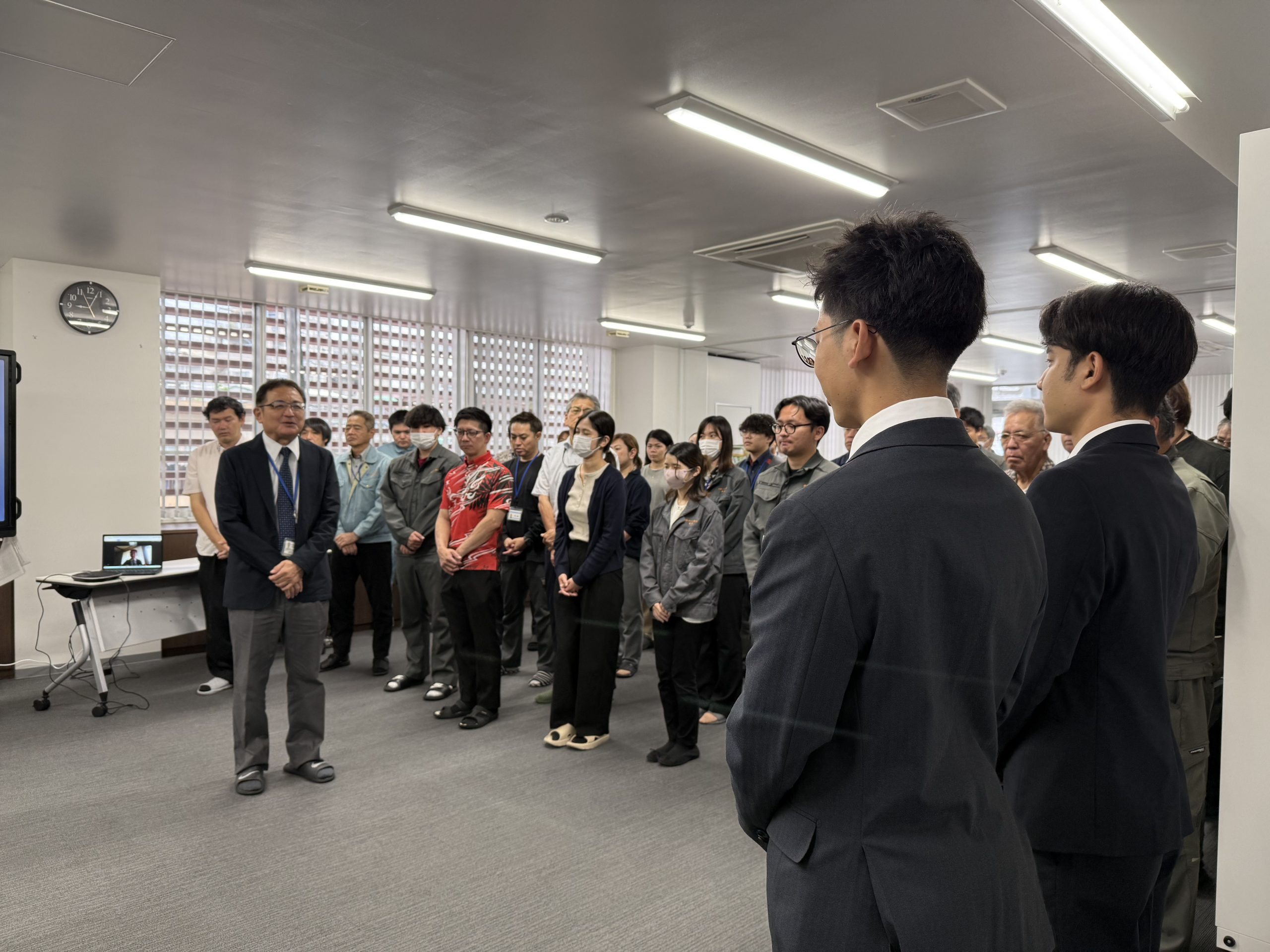 2026.04.14 令和8年度入社式 このたび当社に、新卒社員2名が入社いたしました。 防災地質および橋梁・構造解析グループに配属され、それぞれの分野での活躍が期待されます。 沖縄の社会基盤を支える一員として、安全・安心なまちづくりに貢献できるよう、日々研鑽してまいります。 今後ともご指導ご鞭撻のほど、よろしくお願いいたします。